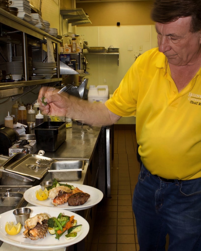 Chef Ron hard at work in the kitchen, cooking things up and teaching our staff new recipes as we prepare to roll out our new menu.