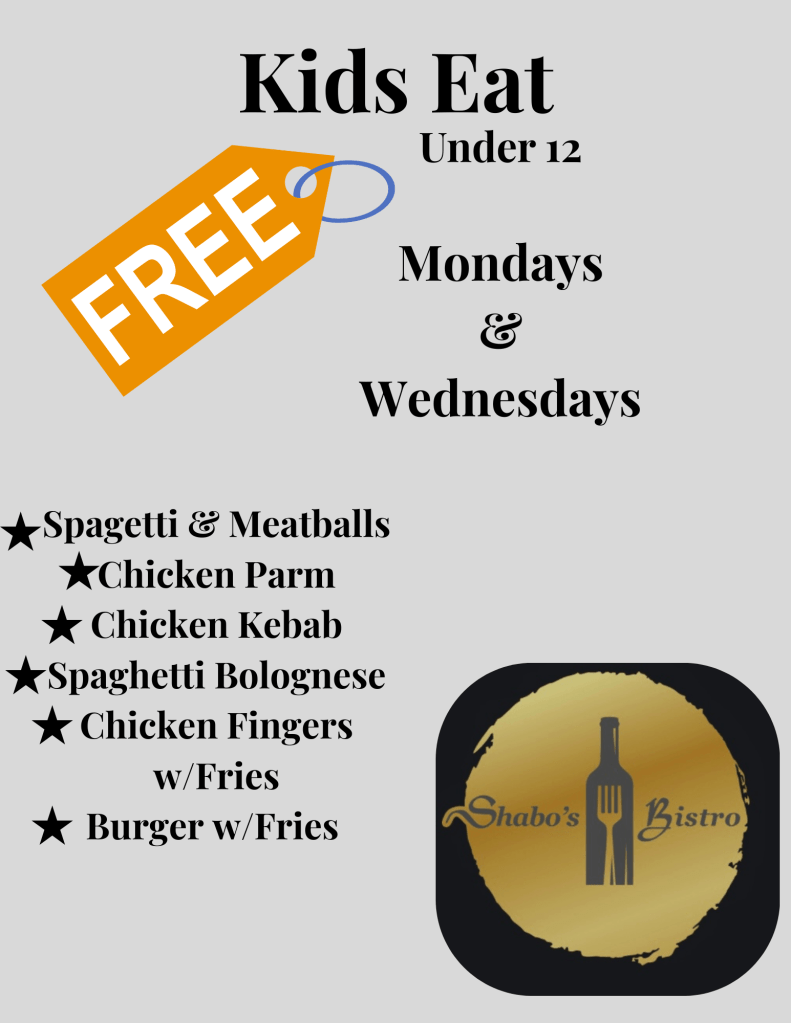 Kids eat FREE every Monday & Wednesday. Bring the whole family and enjoy!